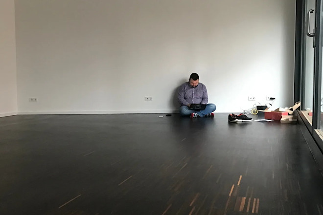 Simon in the ‘old-new’ office in Berlin, with a 2 week Ikea delay