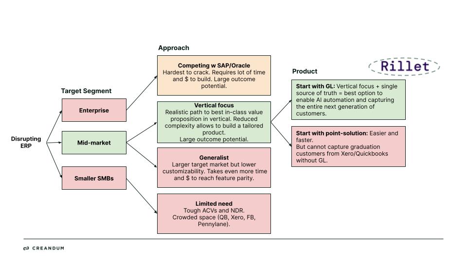 Investment memo chart - 'Why Rillet's approach is most effective for disrupting ERP'